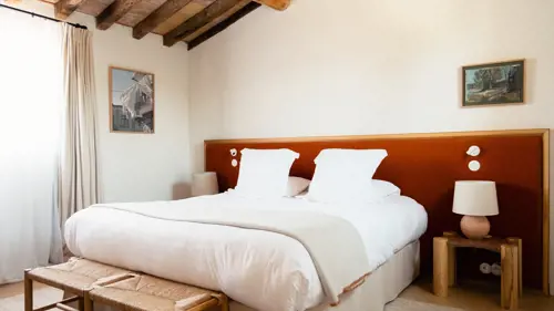 Esta suite (la más amplia del pueblo) se sitúa en una pequeña granja que reivindica la provenza a lo grande con sus tres habitaciones, dos baños y un salón con sofá-cama y comedor. Cada habitación, cada esquina, condensa el espíritu del interior de la región con detalles contemporáneos, clásicos de la literatura local, tejas barnizadas en tonos cobre, cerámica con raíces y yeso inmaculado... El refugio perfecto para sus amigos y familia.